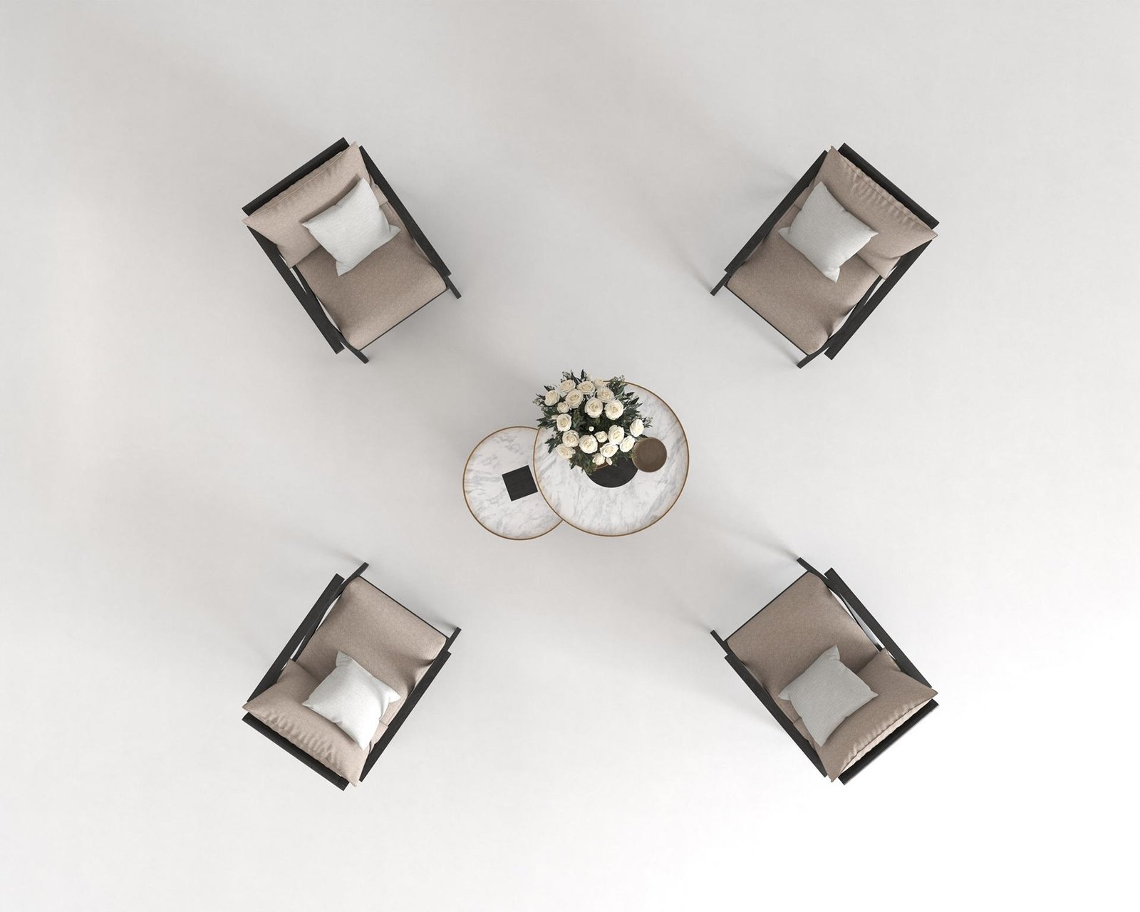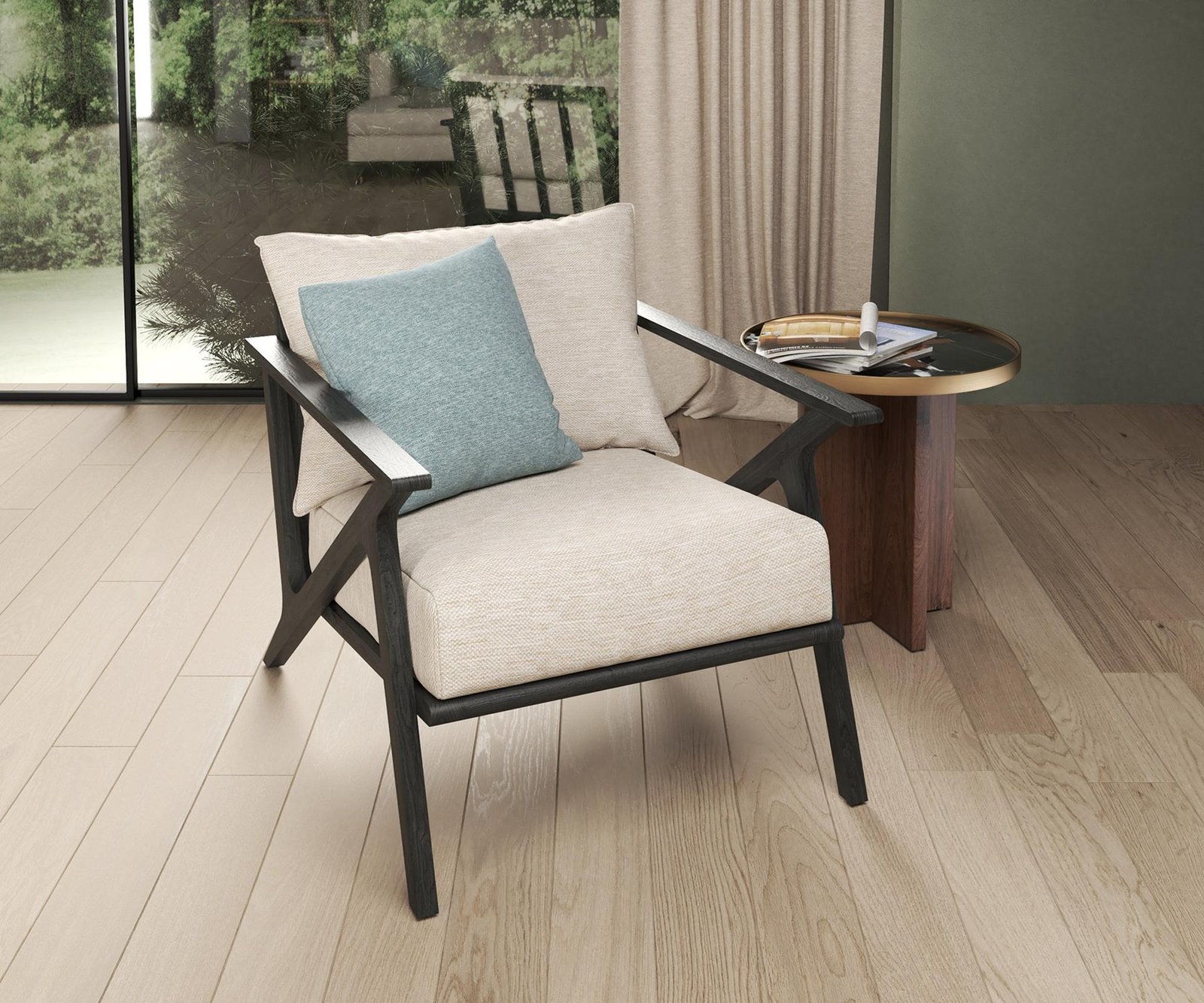 Armchair with subtle tapering and a slight play for that classic retro look.