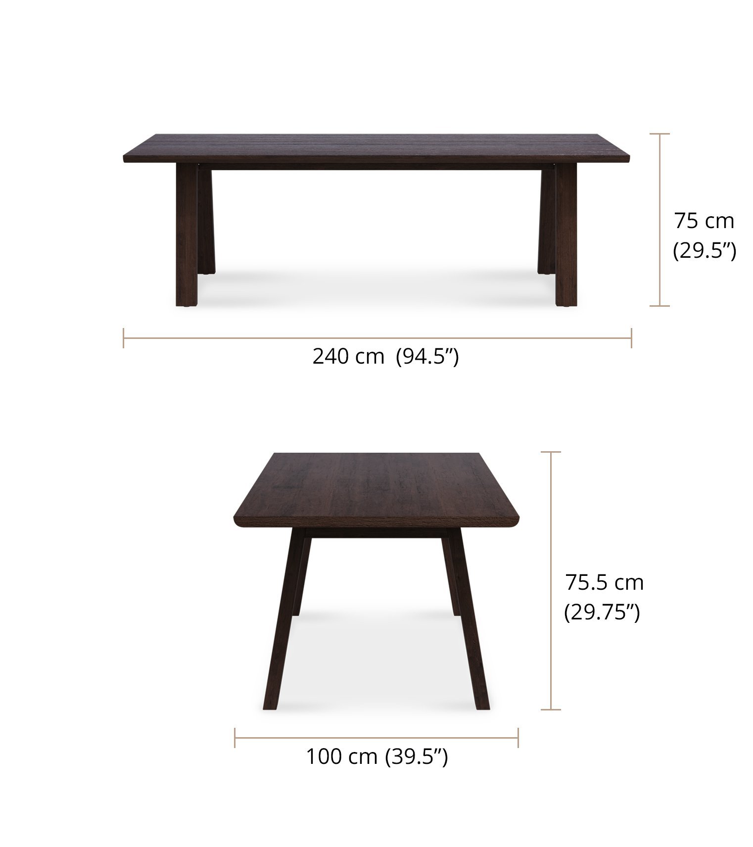 Excellent family table for dining in wide dimension. Strong and sturdy, each table is made of solid teak wood with walnut brush highlighting the wood’s open grain.
