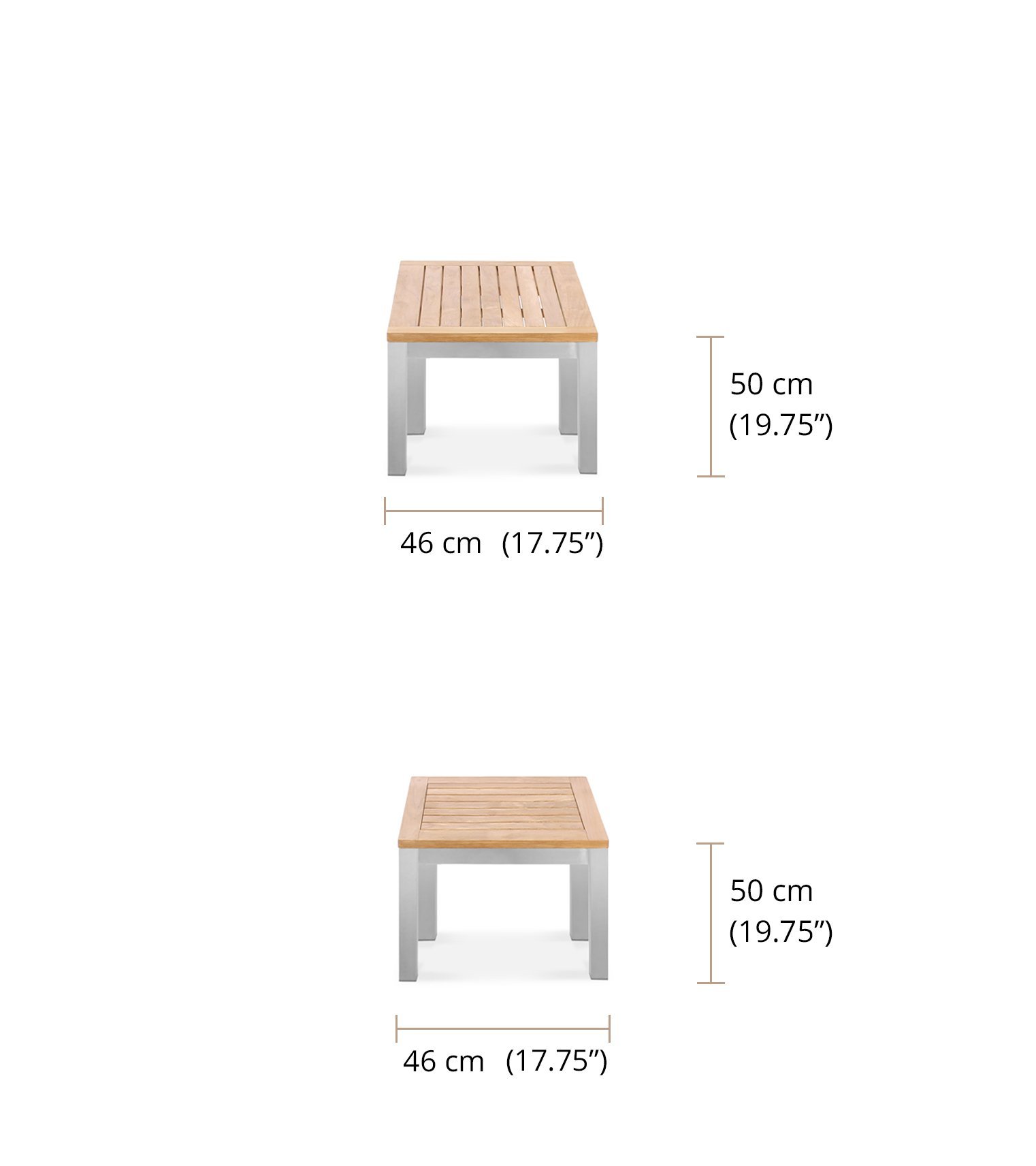 - Top: Natural teak fine sanded