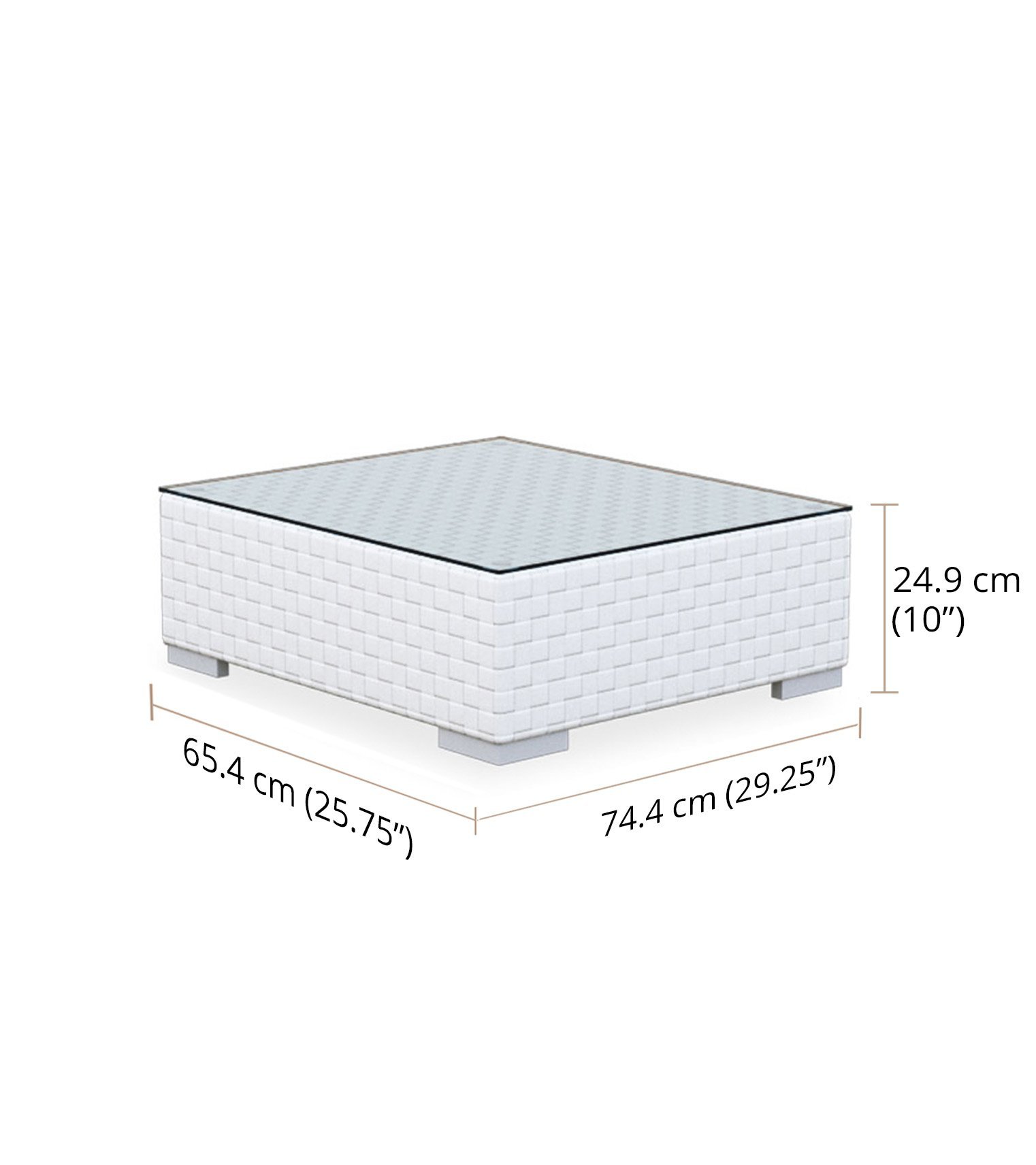 Comfortable height coffee table using premium synthetic fiber 30mm, with seamless weaving technique. Hence, the weaving is flat and unruly, extremely neat. The powder coating process on aluminum frames involves adding colors, scratch proof surface, protection from corrosion. Convenient height for lounge seating.