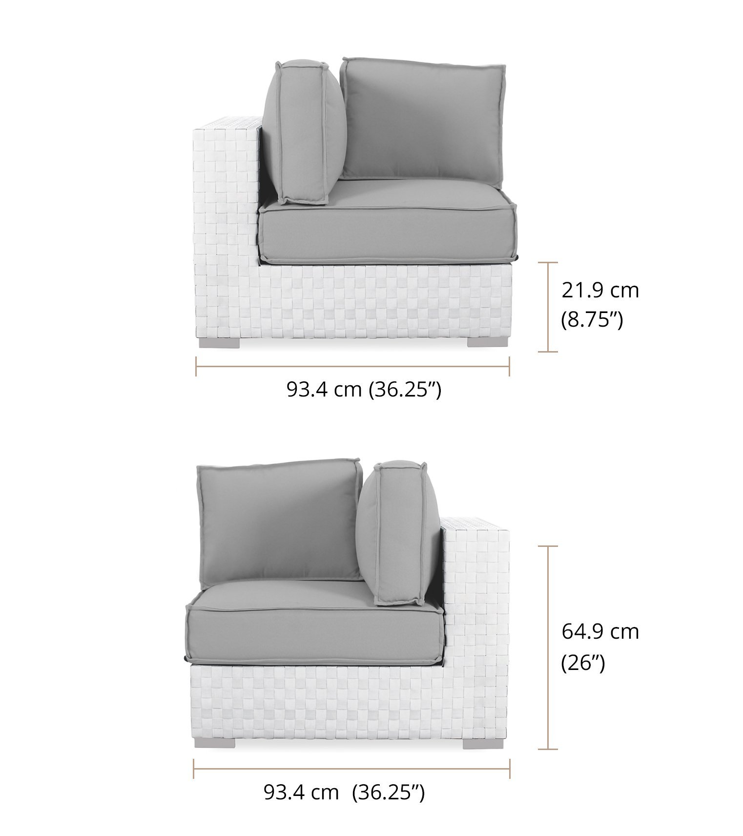 Overall Dimension: W-93.4 D-93.4 H-64.9 cm / W-36.75” D-36.75” H-25.5”